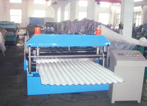 This Roof tile making machine is the special equipment for continuous rolling and cold-forming on steel sheet. It adopts coiling steel sheet as the raw material, decoiling, then continuous rolling and cold-forming, automatically cut to the size and output the finished panel to the supporter. Roof tile making equipment is really a new type of energy-saving and high-effective producing equipment for steel structure